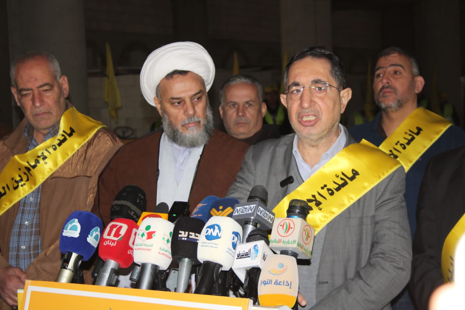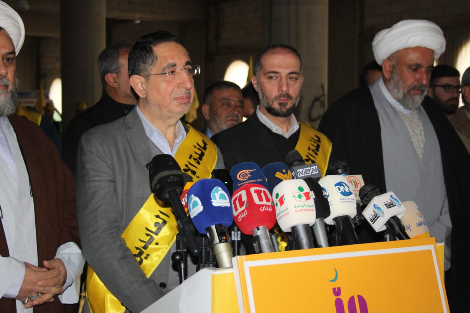 وخلال المناسبة، ألقى الحاج حسن كلمة أكد فيها أن الاعتداءات الإسرائيلية مستمرة على مناطق البقاع والجنوب، ولا سيما في عين الحلوة، مستهدفة المدنيين والأطفال، ما أدى إلى سقوط عدد من الشهداء وتدمير المنازل والممتلكات، مشيراً إلى أن العدوان مستمر منذ السابع والعشرين من تشرين الأول 2024.