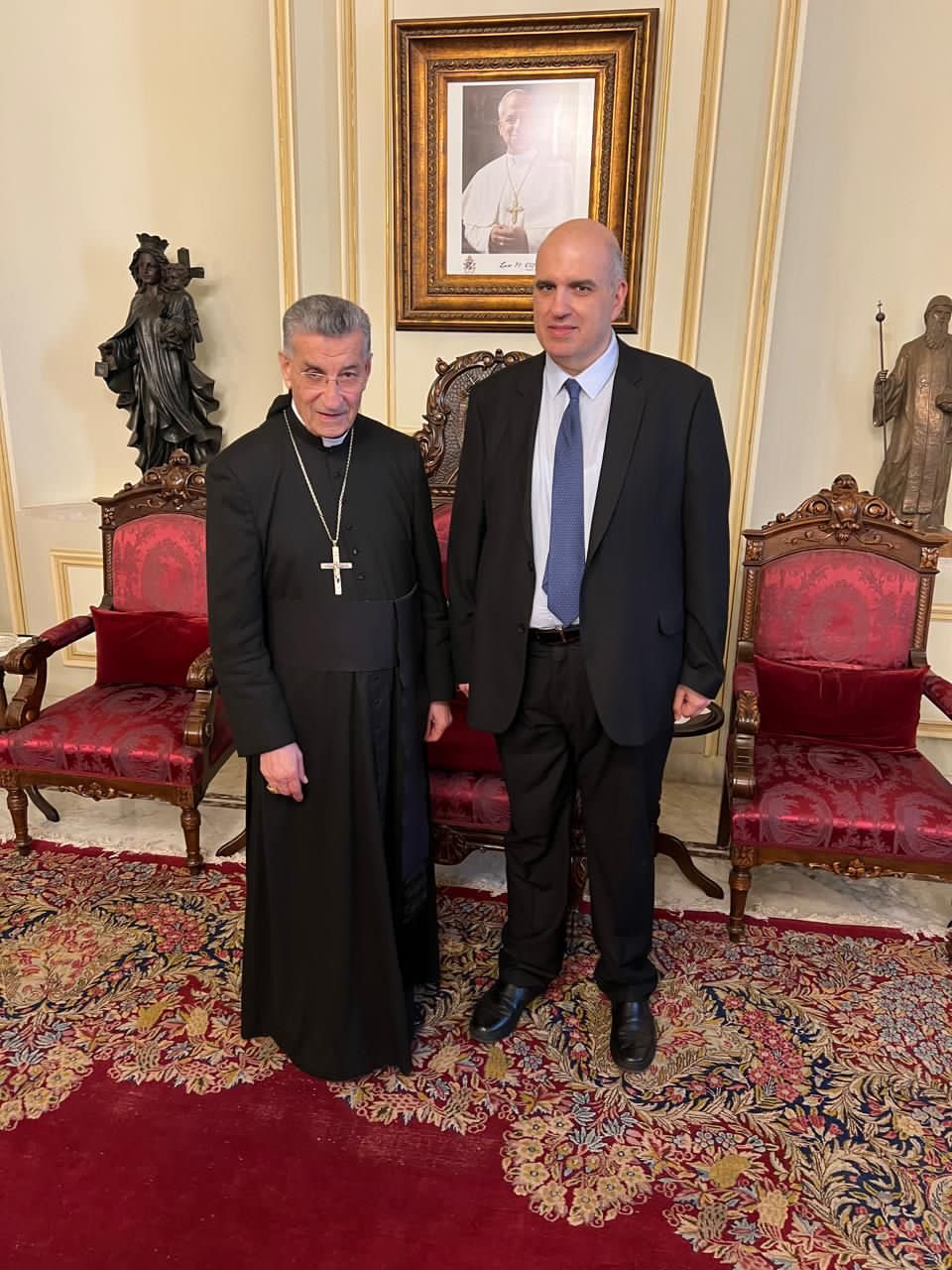 زار المدير العام لوزارة الزراعة المهندس لويس لحود، مساء اليوم الثلاثاء، البطريرك الماروني الكاردينال مار بشارة بطرس الراعي، في الصرح البطريركي في بكركي، حيث قدّم له التهاني بمناسبة عيد الفصح، ناقلًا تحيات وزير الزراعة الدكتور نزار هاني، ومتمنيًا له دوام الصحة وللبنان الاستقرار والازدهار.